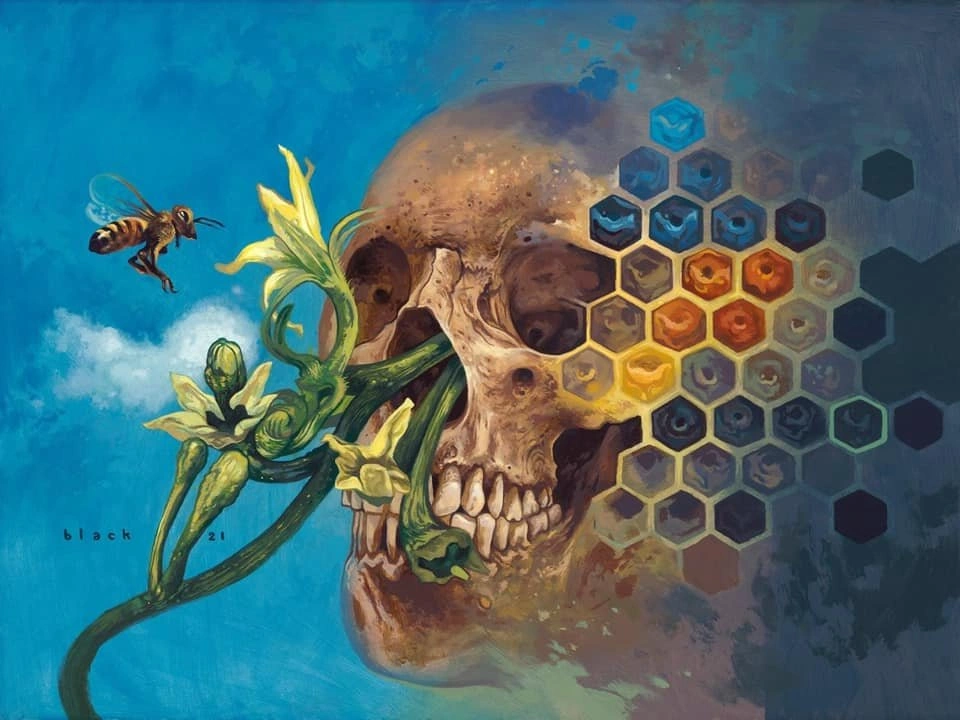 Steven Russell Black is a painter who loves the darker side of surrealism. His work often reveals the horror under the surface of beautiful things and the beauty in the horrific.